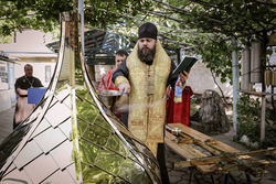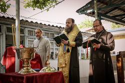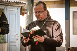 Его Преосященству сослужили: благочинный Ошского округа протоиерей Виктор Реймген, настоятель Успенского храма иерей Сергий Арбузов. Завершив чин освящения владыка обратился к присутствующим с архипастырским словом.