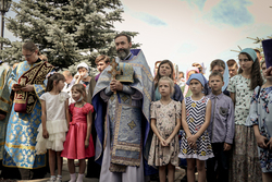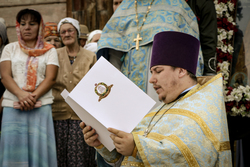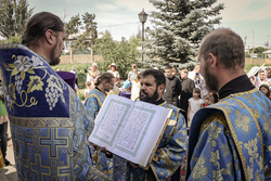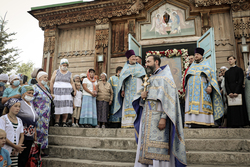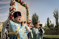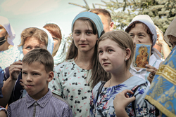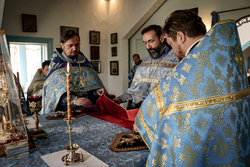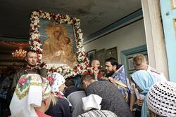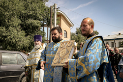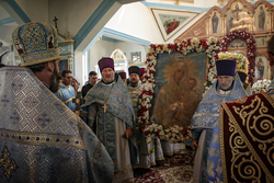 Затем перед входом в храм был отслужен благодарственный молебен с чтением молитвы Царице Небесной.