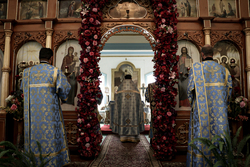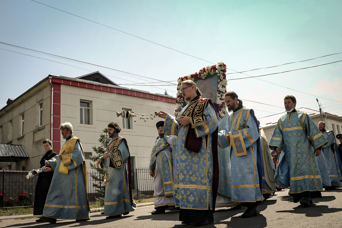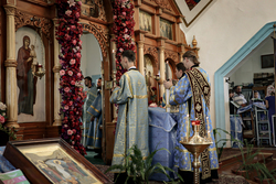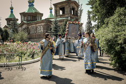 В этот праздничный день, когда Церковь Русская, духовно торжествуя и ликуя, воссылает немолчные славословия Пресвятой Владычице нашей Богородице и Приснодеве Марии, молитвенно воспоминая великое множество чудес и благодатной помощи, явленное через Её чудотворный образ, именуемый Тихвинским, мы, по сложившейся десятилетиями в нашей епархии традиции, спешим сюда, в город Каракол, в храм Пресвятой и Живоначальной Троицы, дабы единодушно, едиными усты и единым сердцем, с глубоким благоговением и трепетным ликованием, вознести сугубые славословия и благодарения Царице Небесной, и воздать благоговейное поклонение Её Честному Образу, именуемому Иссык-Кульская Тихвинская Слезоточивая!