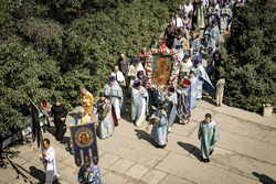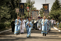 По окончании Литургии был совершен Крестный ход. Тихвинская икона Пресвятой Богородицы в сопровождении духовенства, паломников и прихожан храма под пение «Пресвятая Богородица, спаси нас» была обнесена вокруг храмового комплекса.