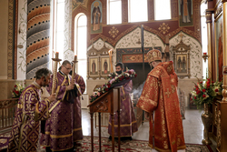 13 августа 2021 года, в седмицу 8-ю по Пятидесятнице, в канун праздника Изнесения (Происхождения) Честных древ Животворящего Креста Господня, епископ Бишкекский и Кыргызстанский Даниил совершил уставное вечернее богослужение.