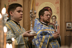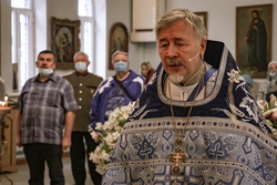 Его Преосвященству сослужили: архимандрит Петр (Путиев), благочинный Бишкекского округа, протоиерей Андрей Борисенко, настоятель храма Рождества Богородицы, протоиерей Игорь Дронов.
