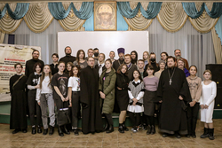 В рамках конференции были заслушаны доклады. Рязанова Юлия рассказала о работе приходского молодежного отдела (храм св. прав. Иоанна Крондштатского, с. Манас). Цигельнук Аделина (храм Архистратига Божия Михаила, с. Беловодское) предоставила доклад на тему: Масс медиапространство: разрушение личности или возможность открытия миру».