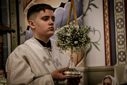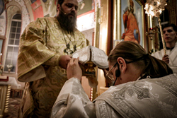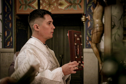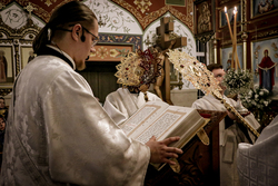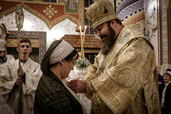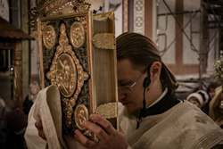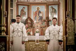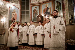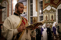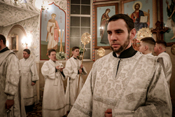 В честь празднования Рождества Христва владыка Даниил наградил диакона Алексея Данилова двойным орарем и регента Архиерейского хора Евгению Фисенко медалью преподобного Ираклия Иссык-Кульского III степени.