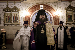 В завершение ночной Литургии глава Бишкекской епархии поздравил верующих с праздником Рождества Христова и обратился к прихожанам с архипастырским словом.