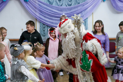 В роли Деда Мороза неизменный Владимир Белкин, в роли снегурочки впервые Верхушина Ольга, актеры-аниматоры ребята из Владимирской школы и молодежного движения епархии.