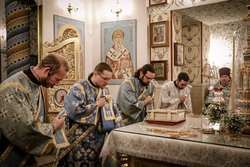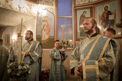 Его Преосвященству сослужили: ключарь Свято-Воскресенского кафедрального собора протоиерей Петр (Путиев), благочинный Центрального благочиния протоиерей Андрей Борисенко, протоиерей Андрей Кунавин, секретарь Бишкекской епархии иерей Александр Пелин, иерей Георгий Дворовой, иерей Андрей Бутаков, иерей Илия Меляков.