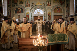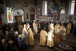 Затем, в своем слове владыка отметил день памяти блаженной Ксении Петербургской. «После смерти своего супруга блаженная Ксения раздала все свое имение, приняв на себя очень тяжелый подвиг – Христа ради юродство. Ее поносили, гнали, не понимали, смеялись – но со временем, и до скончания века сего, весь народ наш почитал, и будет почитать блаженную Ксению Петербургскую, обращаясь к ней молитвенно и прося ее заступничества. Потому что в полном отрешении от мира, в этом подвиге, она стяжала благодать Святого Духа. Нам памятен также подвиг новомучеников и исповедников, которые Христа ради, с готовностью претерпевали лишения, гонения и были готовы умереть и умирали за Господа. И это было совсем недавно. Мы знаем о мучениках первых веков христианства и эти имена хорошо известны и почитаемы в православном мире. Но мы должны не меньше чтить подвиг недавний. Исповедники и новомученики, просиявшие в XX веке также засвидетельствовали свою любовь ко Господу, засвидетельствовали свою крепость и свое смирение. Они, как агнцы шли на заклание, принимая мученическую смерть, окропляя своей кровью и нашу землю, удобряя ее как неким удобрением, чтобы мы сегодня стояли в нашей Церкви, славя Господа и подвизаясь ко спасению. Сейчас мы имеем свободу, храмы наши открыты, но никто не знает, что и как может измениться в любой момент. Нам же главное вынести из сегодняшнего дня, что у нас должно быть живое смирение, как у Закхея, как у блаженной Ксении, живая вера, как у мучеников и исповедников Христа ради пострадавших. Нам необходимо, имея чистосердечную, простую веру как у детей, бежать за Господом нашим; кланяться Ему и обнимать Его всем своим сердцем в своих молитвах».