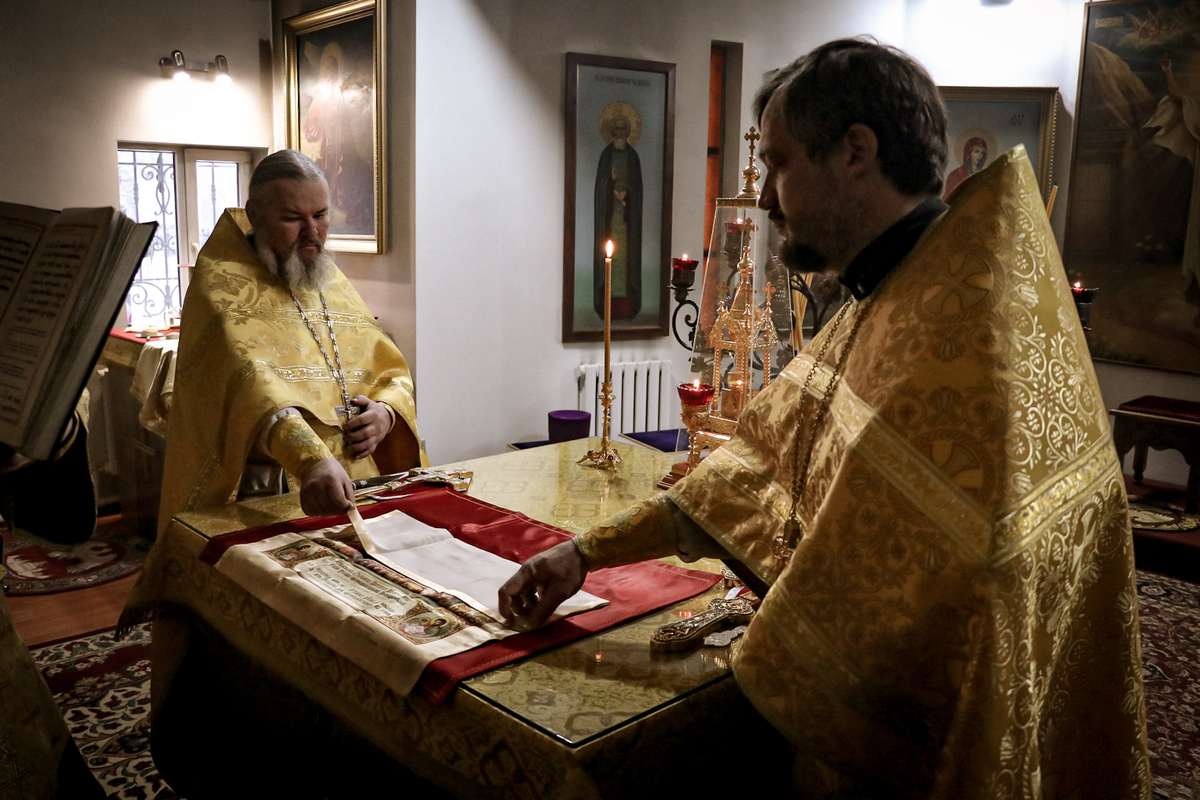 Его Преосвященству сослужили: протоиерей Андрей Кунавин, иерей Георгий Дворовой.