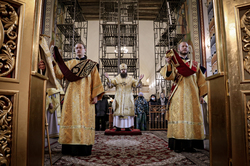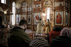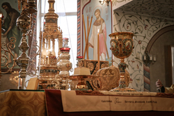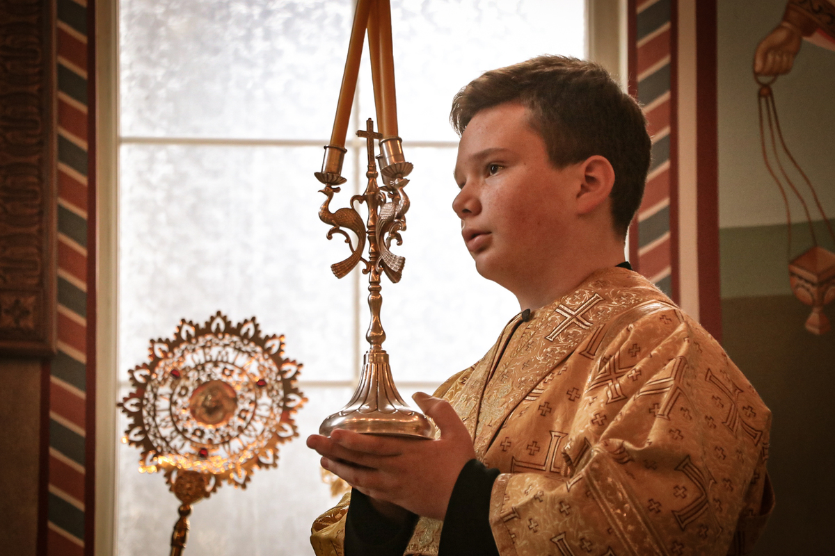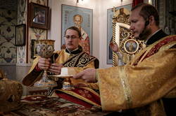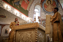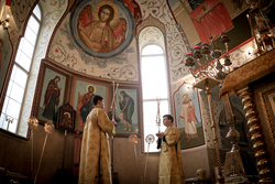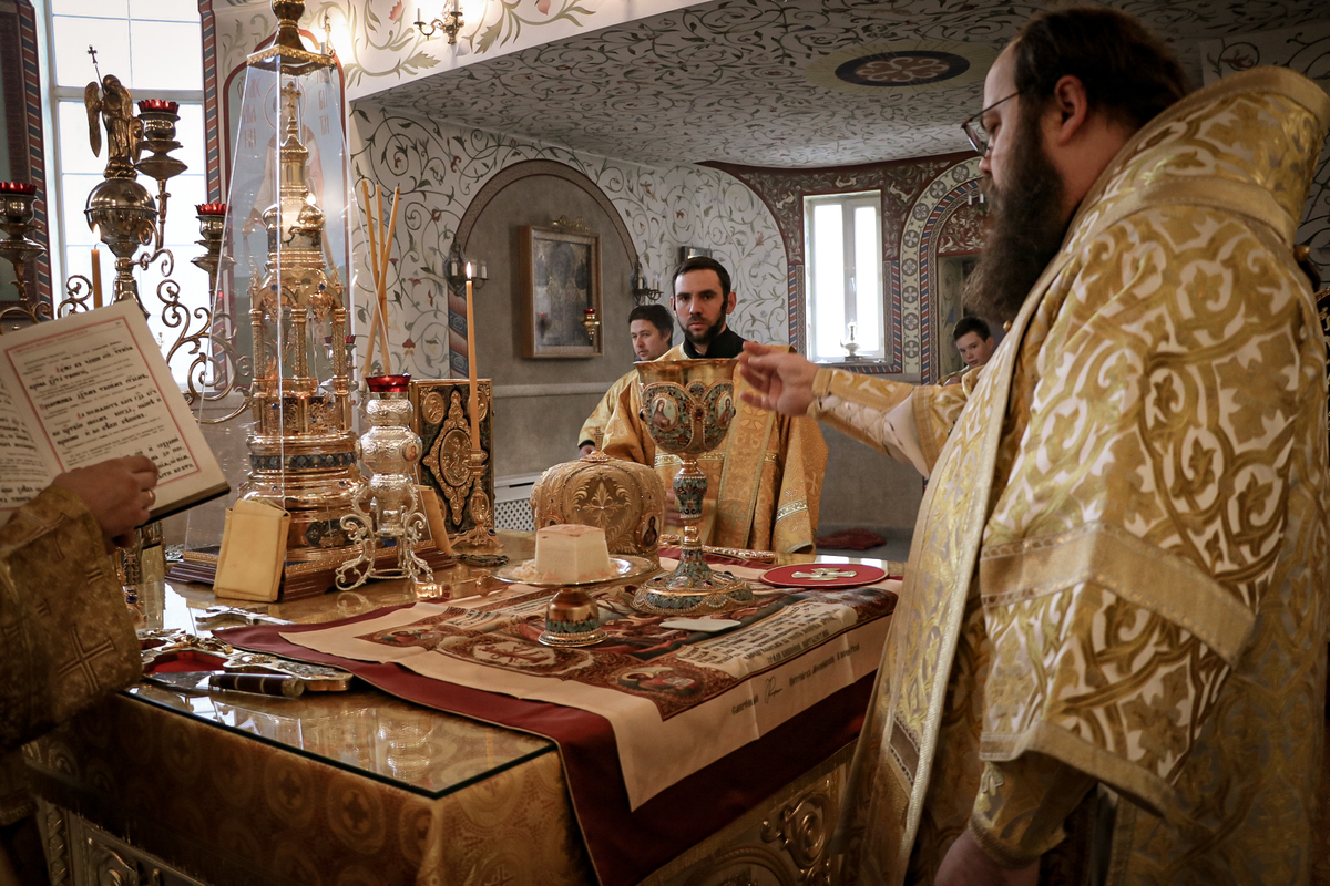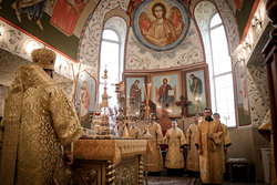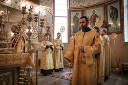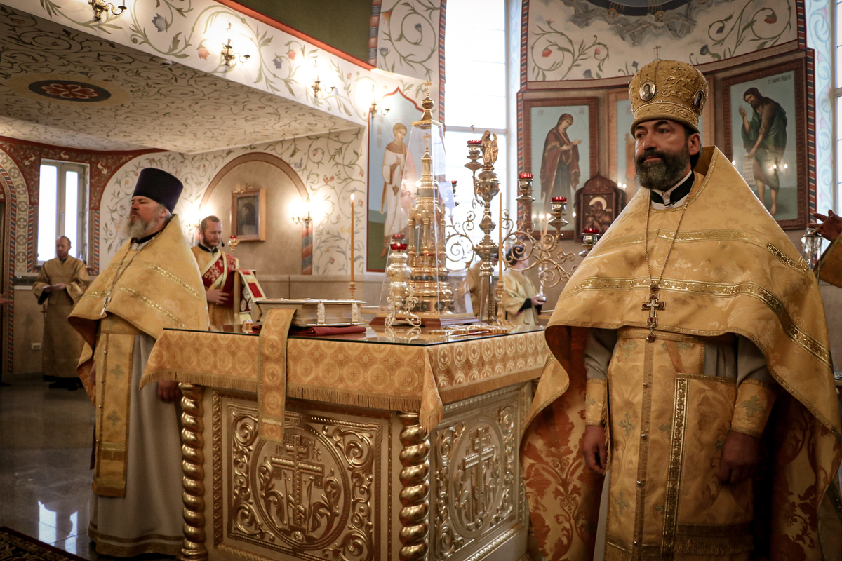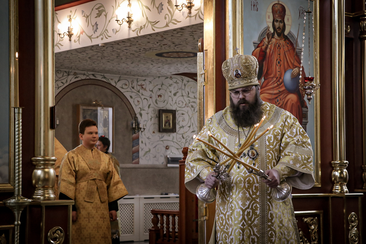 Его Преосвященству сослужили: ключарь Свято-Воскресенского кафедрального собора архимандрит Петр (Путиев), иерей Георгий Дворовой.
