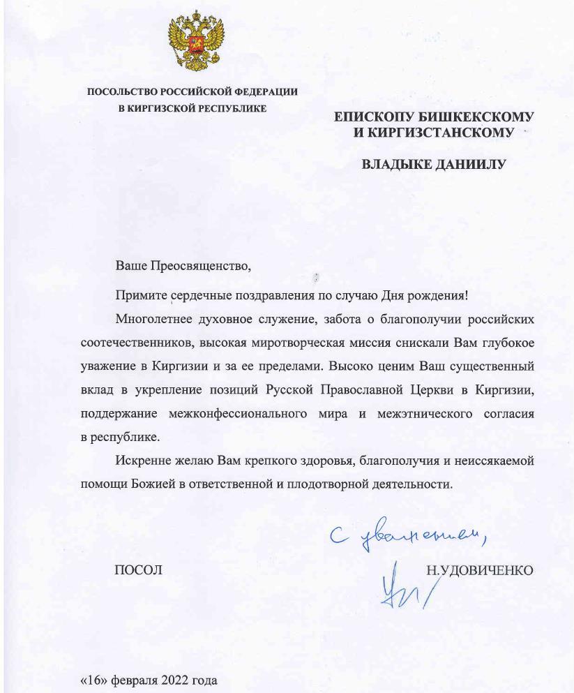 Посол Российской Федерации поздравил епископа Даниила с днем рождения