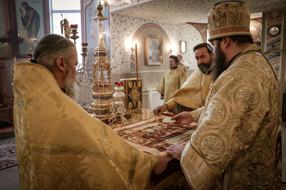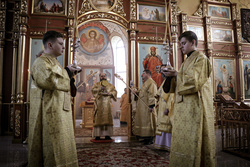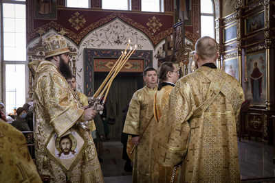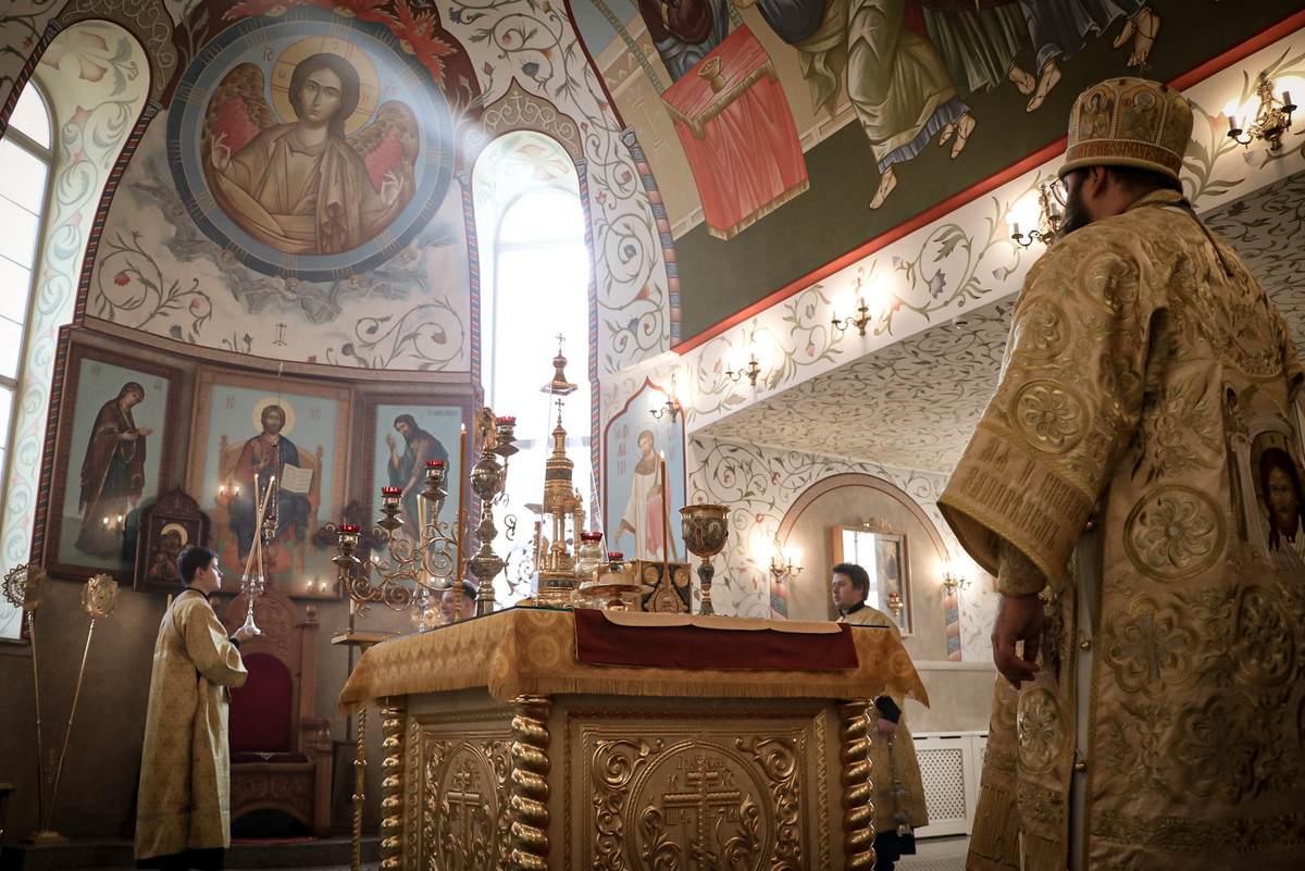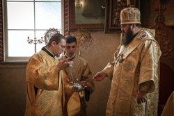Его Преосвященству сослужили: архимандрит Петр (Путиев), иерей Георгий Дворовой.