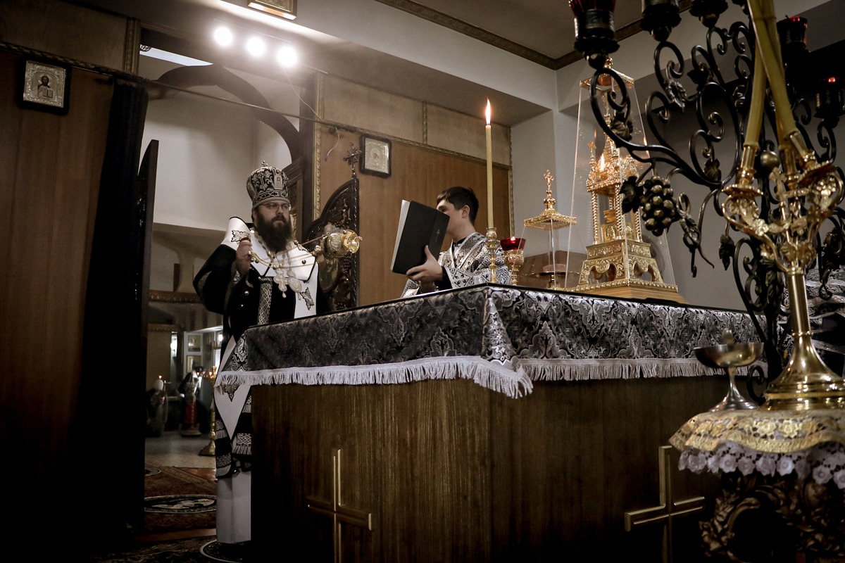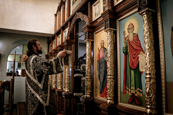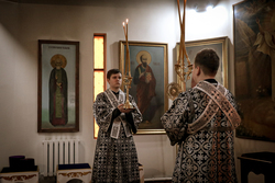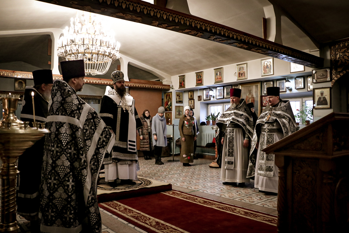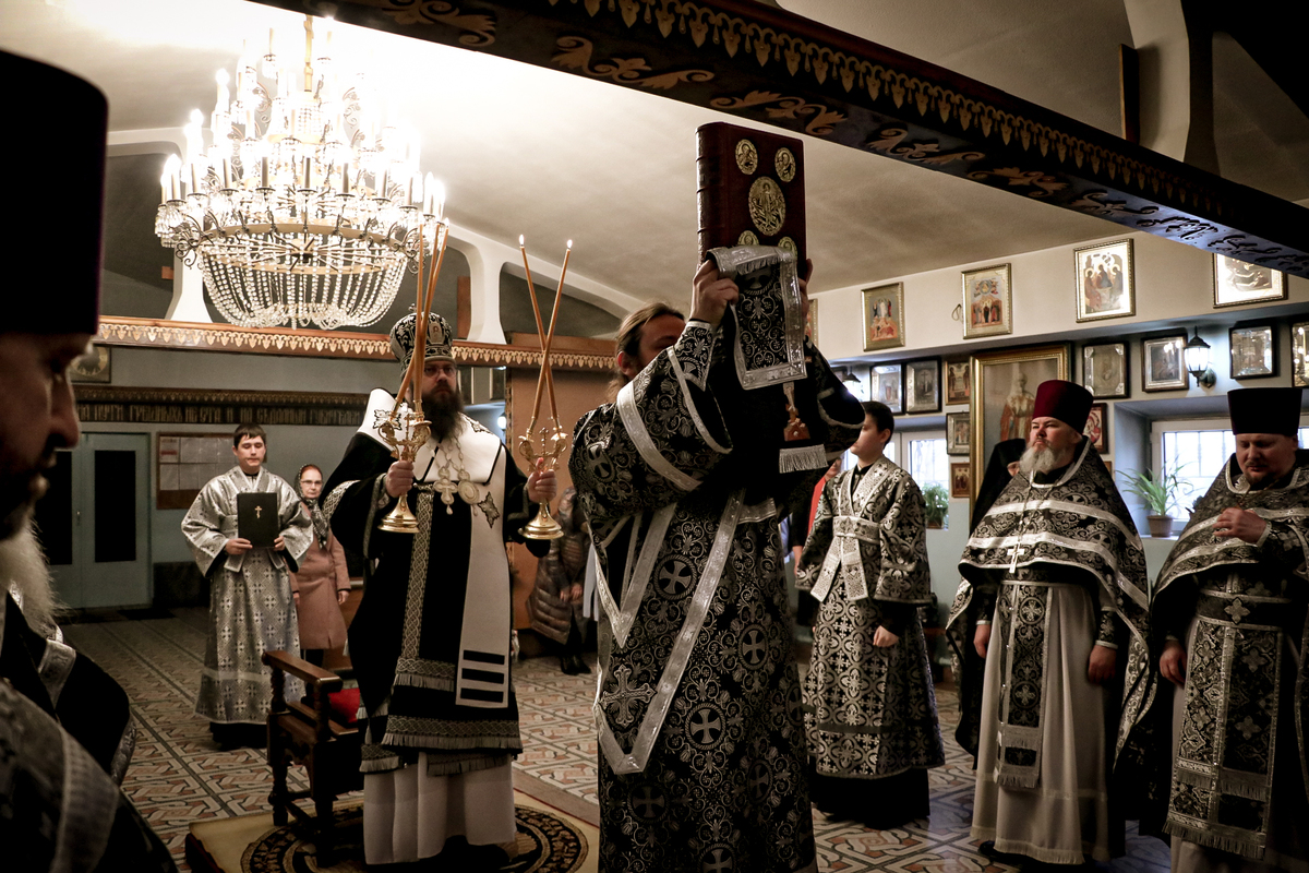 Его Преосвященству сослужило духовенство Владимирского собора, клирик Свято-Воскресенского кафедрального собора иерей Георгий Дворовой.