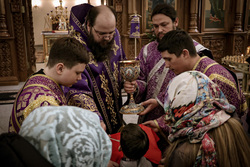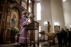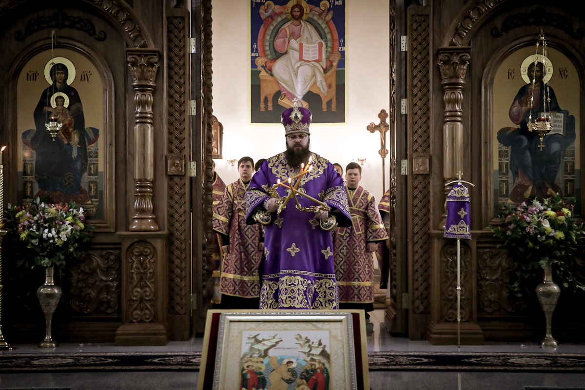 Затем владыка Даниил обратился к прихожанам с архипастырским словом: «Дорогие братья и сестры! Первая неделя Великого поста именуется в честь Торжества Православия. За богослужением мы совершали чин Торжества Православия, в котором мы исповедуем свою веру, исповедуем Символ Веры, в котором заложена основа нашей веры. Этот день был установлен после седьмого Вселенского собора, на котором была осуждена ересь иконоборчества». Затем владыка Даниил поздравил причастников с принятием Святых Христовых Таин. Пожелал всем помощи Божией, крепости и здравия.