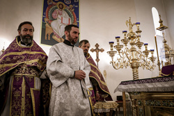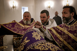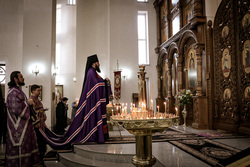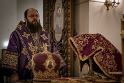 Его Преосвященству сослужили: архимандрит Петр (Путиев), протоиерей Алексий Сыромятников, протоиерей Андрей Кунавин, иерей Георгий Дворовой.