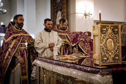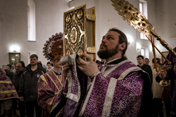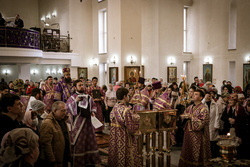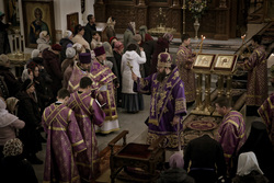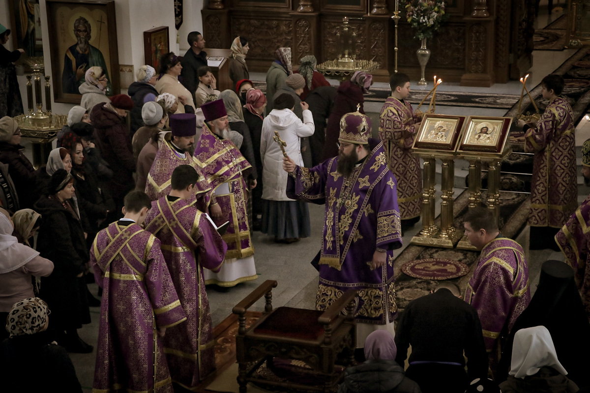 По завершении литургии владыка совершил чин Торжества Православия – торжественный молебен утверждению неискаженного христианского учения над ересями и расколами, во время которого была провозглашена «Вечная память» защитникам Православной веры, а также многолетие Предстоятелям Поместных Православных Церквей, православным архипастырям, пастырям, властям, воинству и всем верным чадам Христовой Церкви.