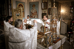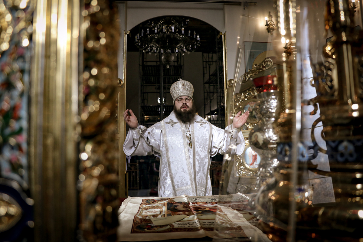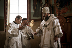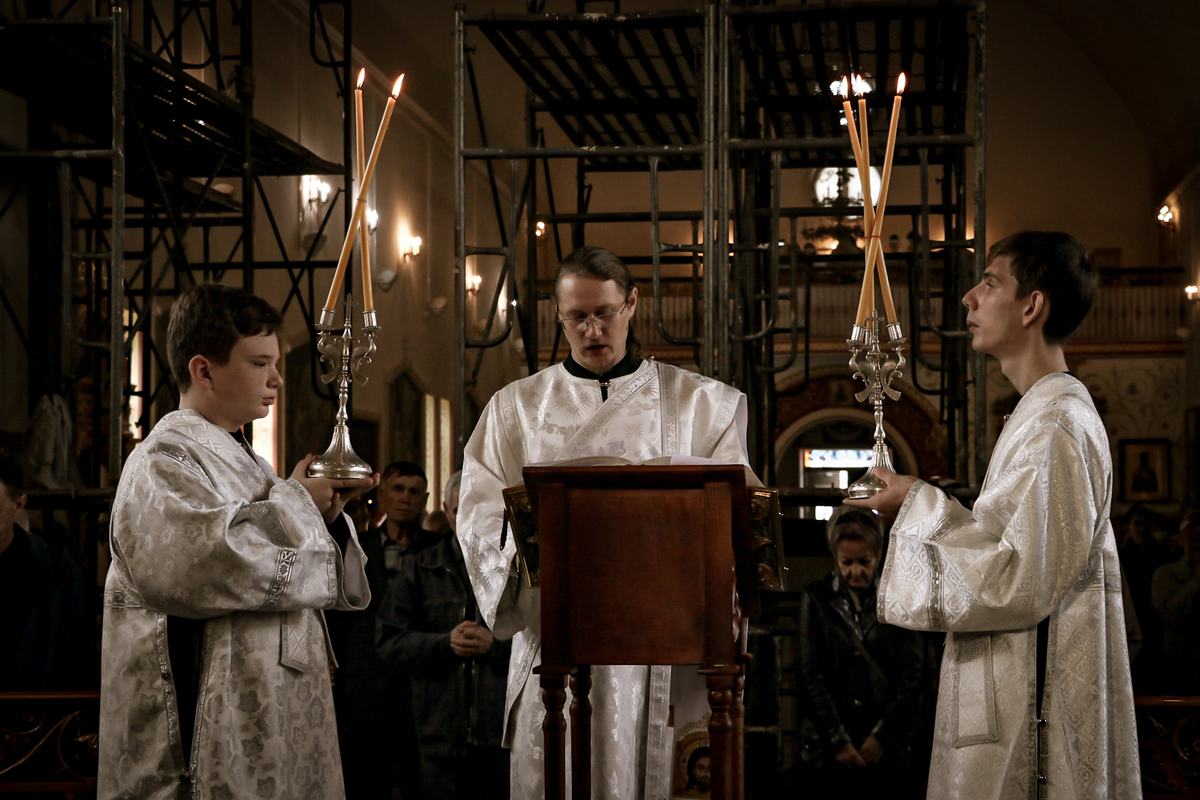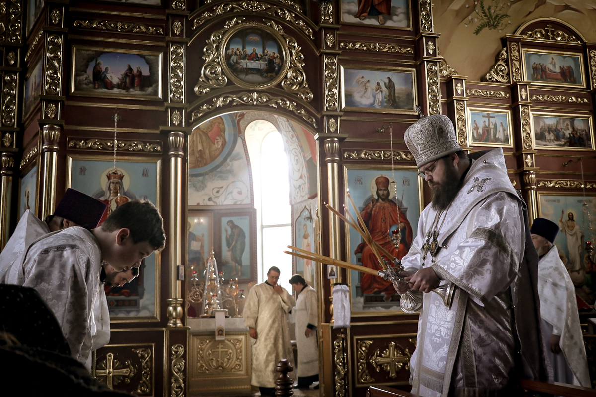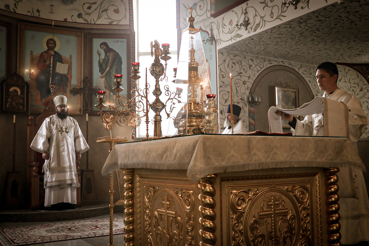 Его Преосвященству сослужили: архимандрит Петр (Путиев), благочинный Восточного округа протоиерей Сергий Чувичкин, иерей Георгий Дворовой, иерей Илия Бойко.