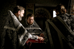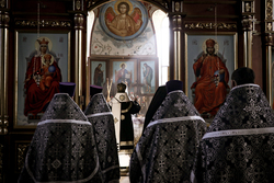 Его Преосвященству сослужили: архимандрит Петр (Путиев), благочинный Центрального округа протоиерей Андрей Борисенко, иерей Георгий Дворовой, иерей Илия Бойко.