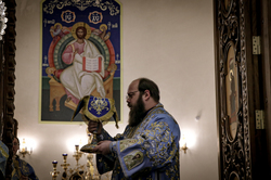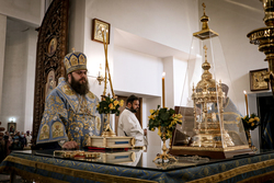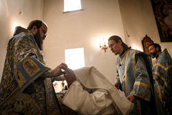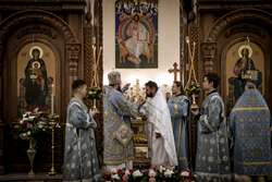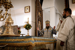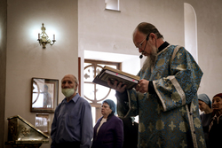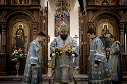 Его Преосвященству сослужили: архимандрит Петр (Путиев), протоиерей Алексий Сыромятников, протоиерей Андрей Кунавин, иерей Георгий Дворовой.