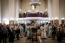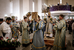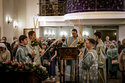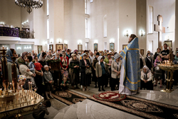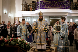 Завершив свое обращение, владыка Даниил поздравил причастников с принятием Святых Христовых Таин, пожелал всем здравия и крепости и еще раз напомнил прихожанам, что вечером 8 апреля будет совершаться особая служба – Похвала Пресвятой Богородицы и пригласил верующих принять участие в этом важном богослужении.