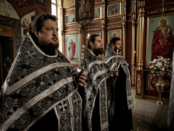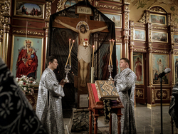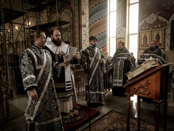 Его Преосвященству сослужило духовенство собора.