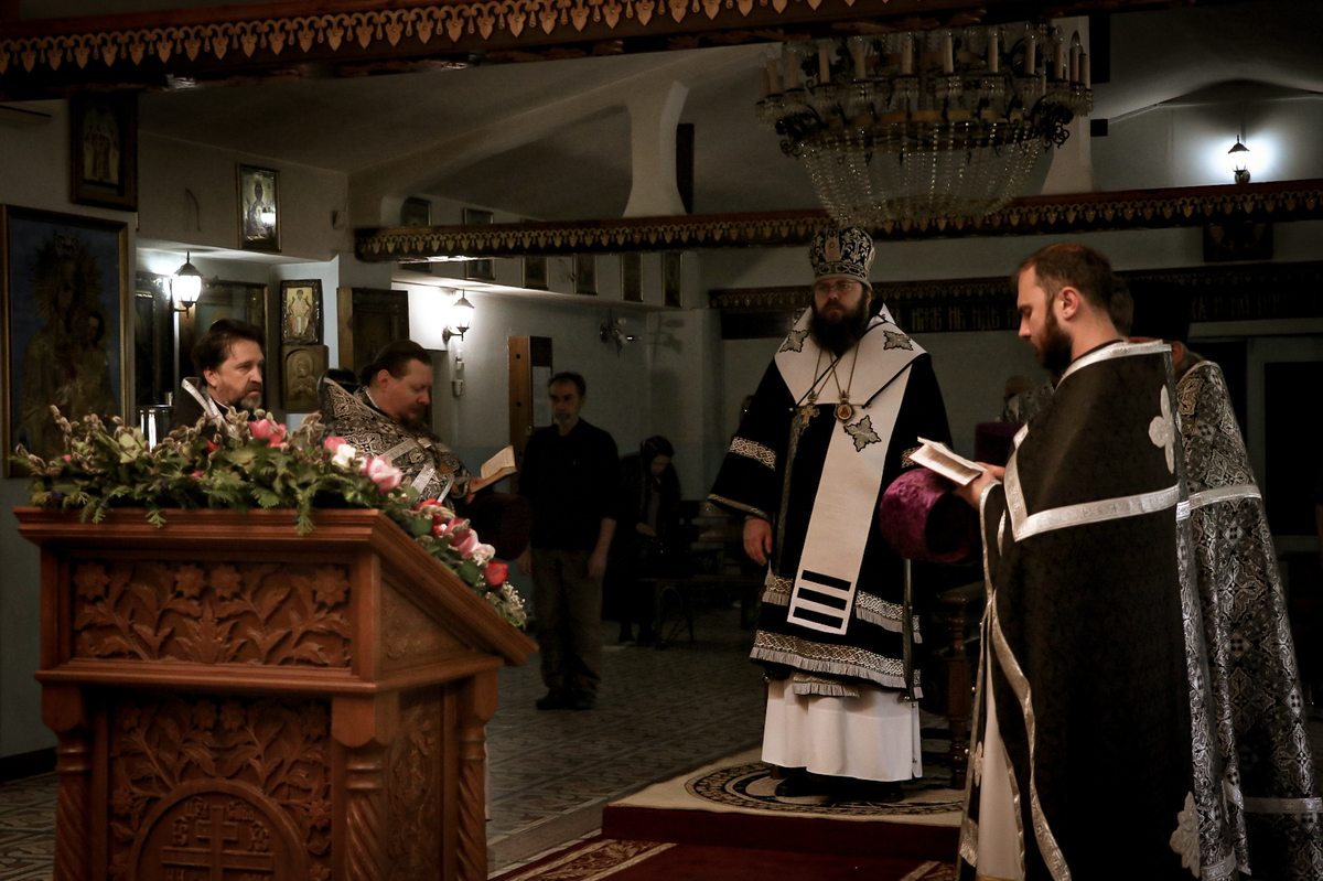19 апреля 2022 года, в Великий Вторник Страстной Седмицы, епископ Бишкекский и Кыргызстанский Даниил совершил литургию Преждеосвященных Даров в храме княгини Ольги.