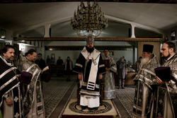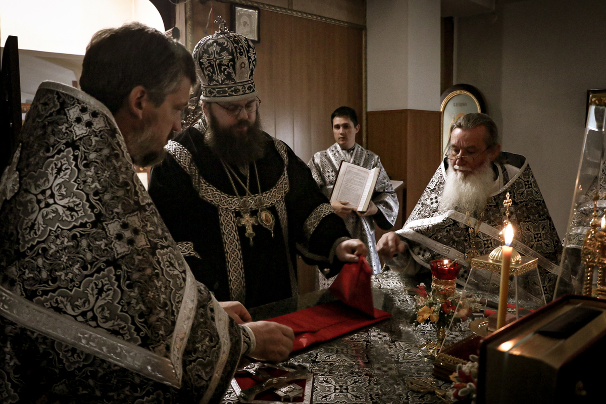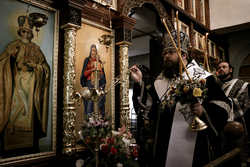 Его Преосвященству сослужило духовенство Владимирского собора.