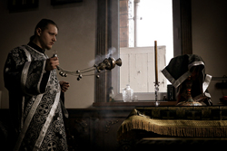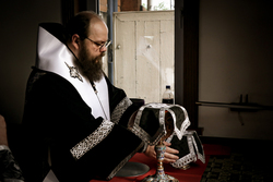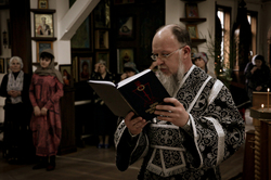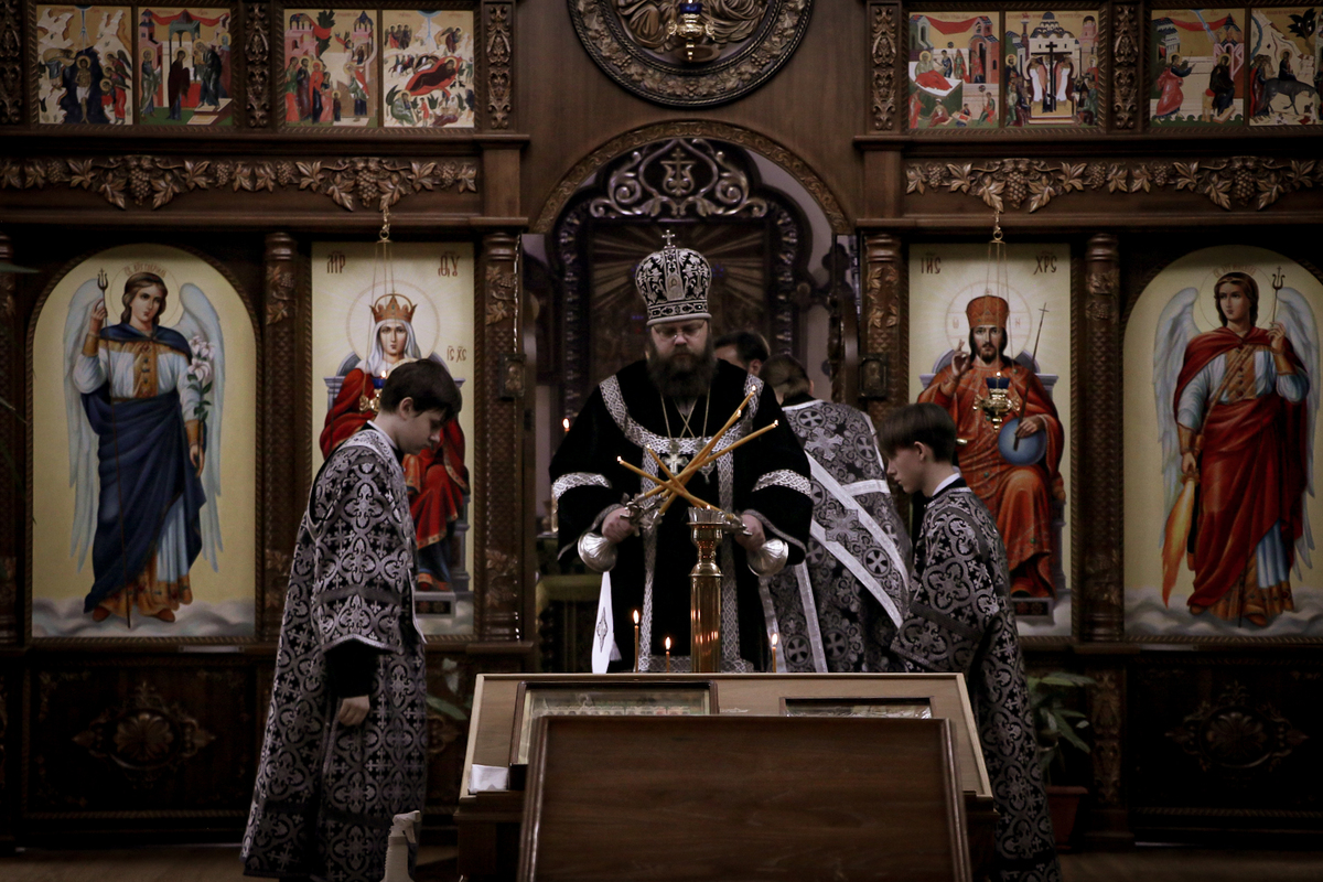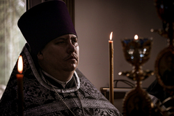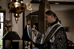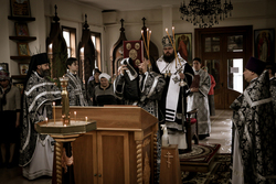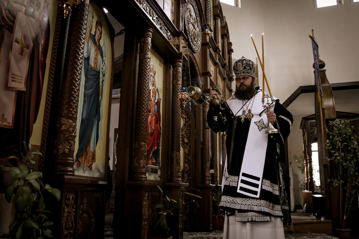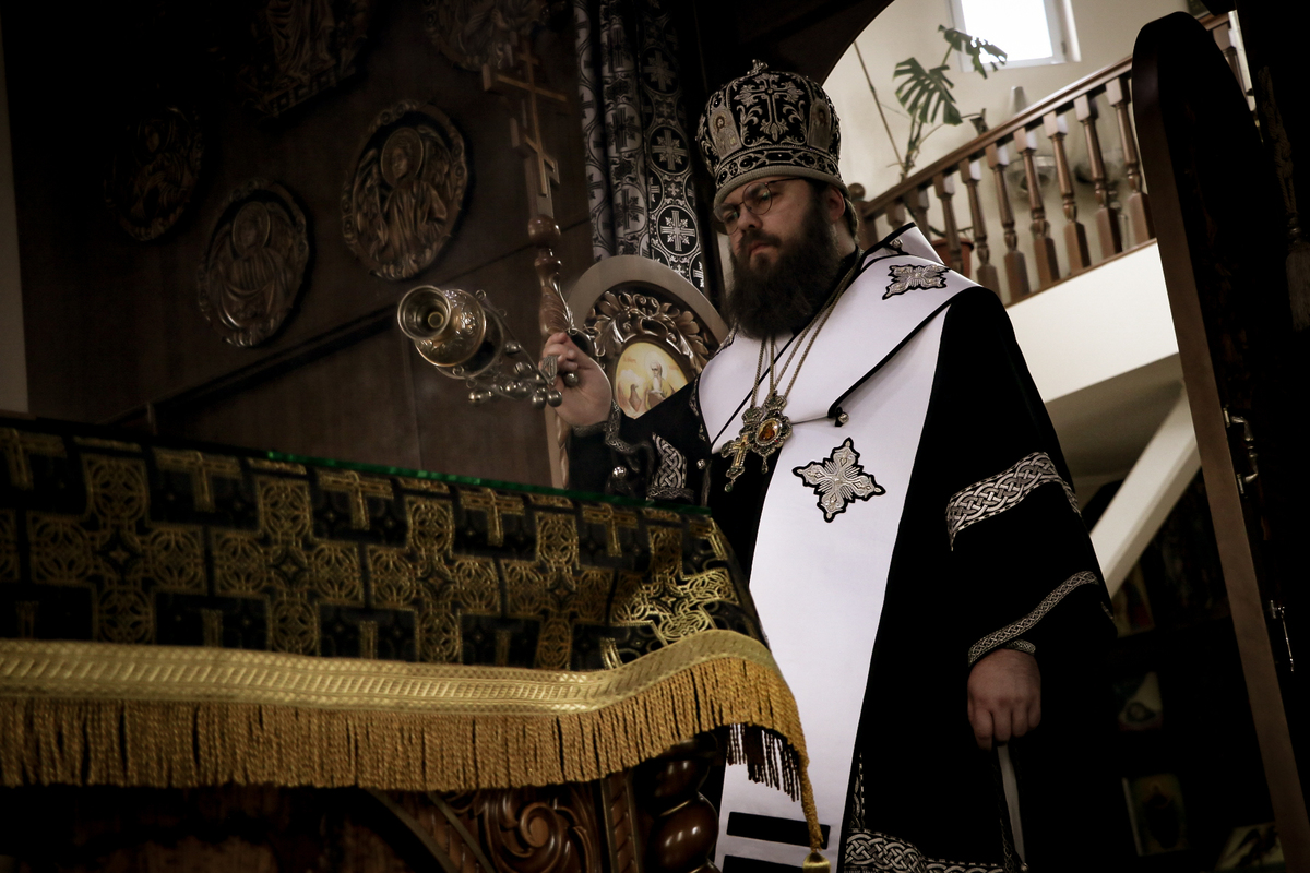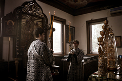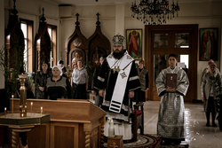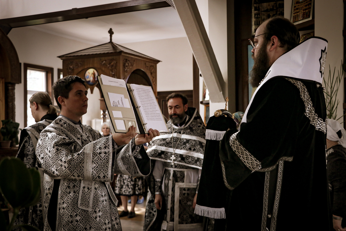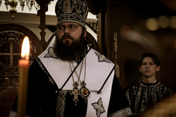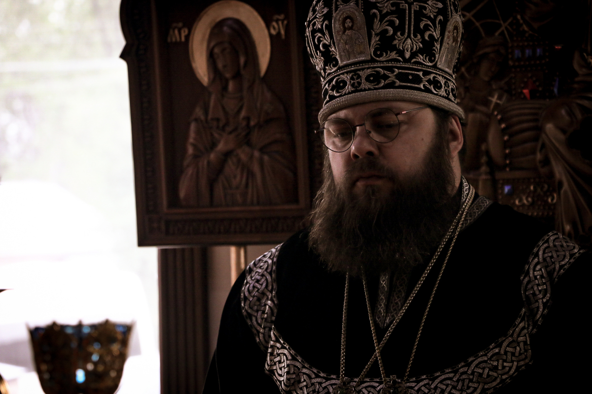 Его Преосвященству сослужили: архимандрит Петр (Путиев), настоятель Архангельского храма иерей Александр Пелин..
