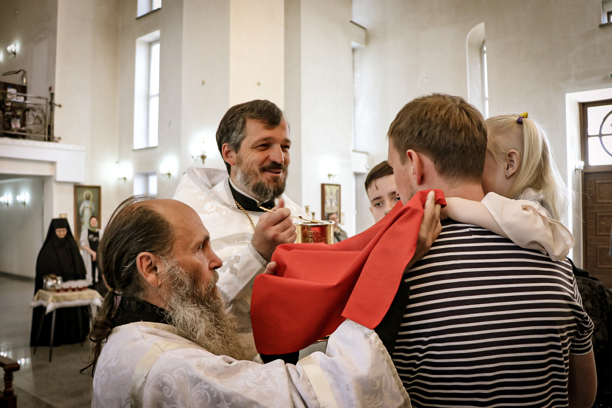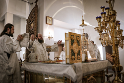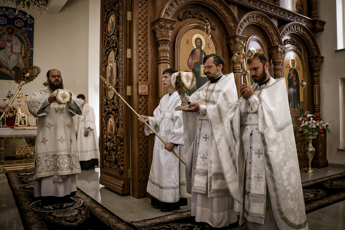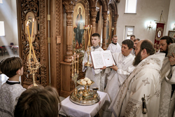 По заамвонной молитве владыка Даниил совершил освящение хлеба и вина.