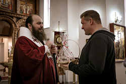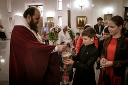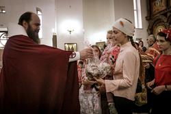 По окончании богослужения владыка Даниил поздравил семьи священников со Светлой Пасхой Христовой и подарил детям пасхальные куличи.