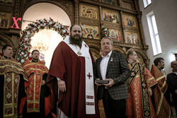 Затем во Владимирском соборе состоялась рабочая встреча епископа Даниила, с прибывшим в Бишкек губернатором Рязанской области Любимовым Н. В. Поздравив Николая Викторовича с Пасхой и пожелав ему Божьего благословения, владыка вручил ему пасхальный кулич.