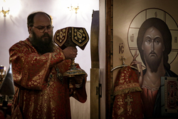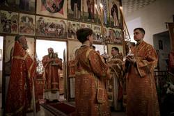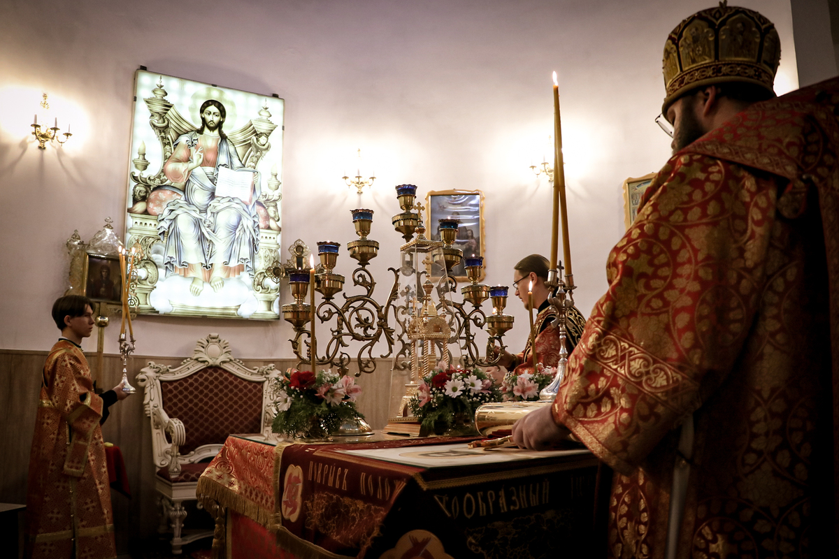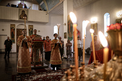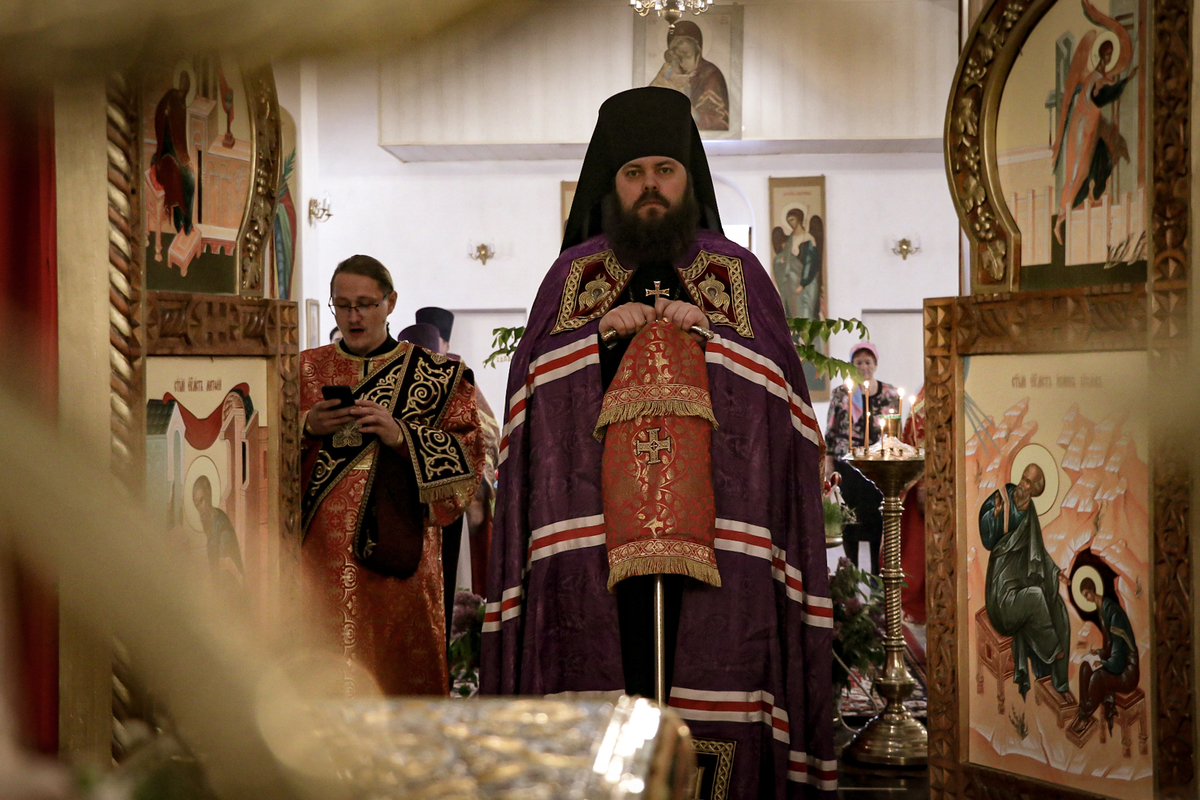 Его Преосвященству сослужили: архимандрит Петр (Путиев), протоиерей Сергий Чувичкин, протоиерей Виктор Гончарук, иерей Георгий Дворовой.