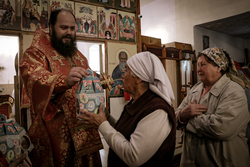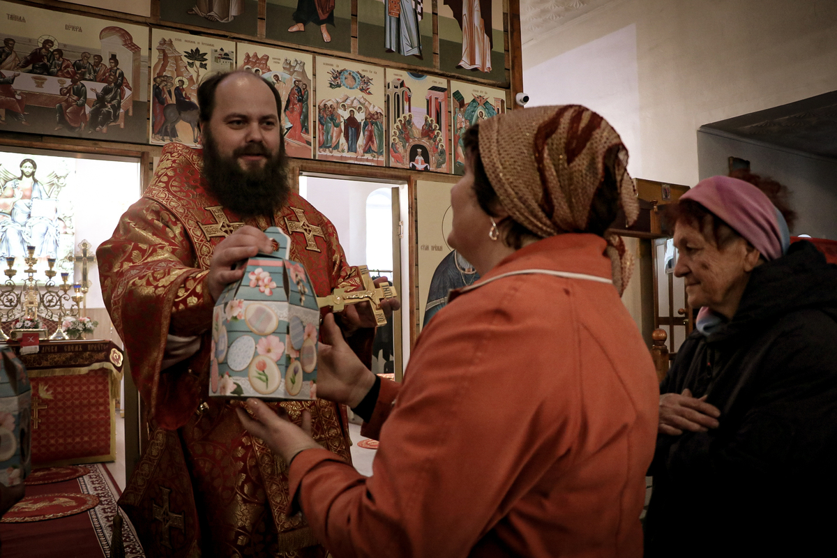 По завершении богослужения владыка Даниил поздравил прихожан с праздником Пасхи Христовой и раздал пасхальный куличи.