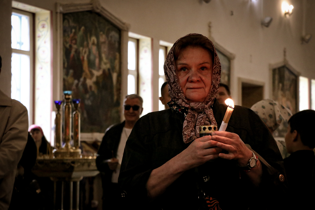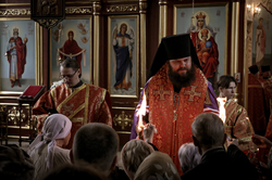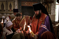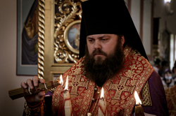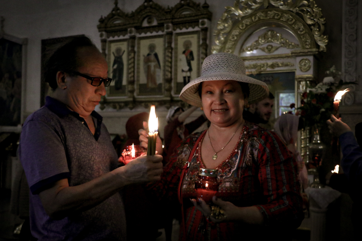 В город Ош из Ташкента Благодатный огонь был доставлен клириком храма Архангела Михаила диаконом Дионисием Зориным.