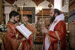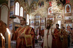 Его Преосвященству сослужили: иерей Георгий Дворовой, иерей Дионисий Иванов.