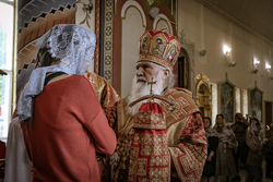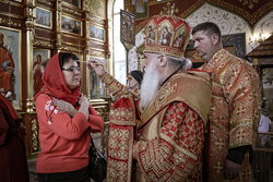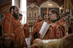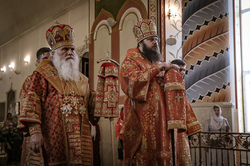 Его Высокопреосвященству сослужили: епископ Бишкекский и Кыргызстанский Даниил, ключарь Свято-Воскресенского кафедрального собора протоиерей Петр (Путиев), благочинный Центрального благочиния протоиерей Андрей Борисенко, иерей Георгий Дворовой, иерей Илия Бойко.