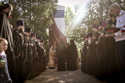 Владыка Феодор в своем обращении подчеркнул, что любая война – неизбежно приводит к потерям. «Но когда мы вспоминаем погибших и павших, не только на поле брани, но и в тылу, мы понимаем, что людьми двигали Евангельские слова о том, что нет больше той любви, чем положить душу свою за ближних своих. И это место вновь возвращает нас к этим словам. Хочется напомнить, что такие мемориалы очень важны и нужны. Об их сохранении необходимо заботиться, потому что они являются посланием и напоминанием всем последующим поколениям. Может быть, даже не зная всех деталей, люди будут задавать вопрос – а что это за место такое, и почему его так почитают? И наша обязанность говорить о том, что пережил наш народ – народ всего СССР. Тогда не было никакого разделения, все были вместе. Сколько госпиталей, медцентров и ВУЗов было эвакуировано в братские республики! Об этом нужно говорить, потому что там, где нет здорового чувства патриотизма, может вырасти нацизм. А нам нужно воспитывать наших детей и молодежь в патриотизме. Дай Бог нам всем сил потрудиться на этом поприще. Всех с праздником! С Днем Победы! Христос Воскресе!»
