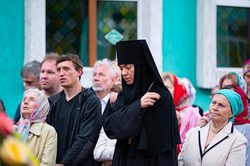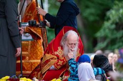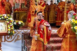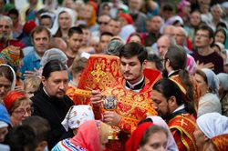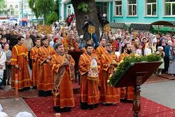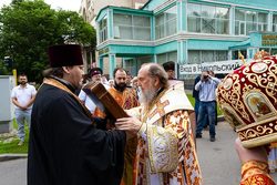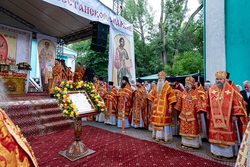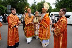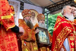 После чтения часов, перед началом Литургии, при пении пасхальных тропарей чудотворный образ Царицы Небесной был встречен у ворот храма, перенесен крестным ходом к месту совершения богослужения и установлен на престоле.