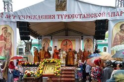 Глава Казахстанского Митрополичьего округа осенил молящихся святыней, после чего сердечно поблагодарил гостей-иерархов, священнослужителей и всех участников торжеств за общую молитву и поздравил собравшихся с сугубыми торжествами, духовно украсившими пасхальные дни, – 150-летием учреждения Туркестанской епархии, принесением в Алма-Ату чудотворной иконы Богородицы и престольным праздником Никольского собора.