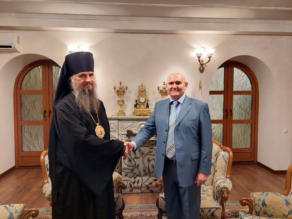13 июня 2022 года, в Посольстве России состоялась встреча епископа Савватия с Чрезвычайным и Полномочным Послом Российской Федерации в Кыргызстане Н.Н.Удовиченко.