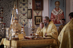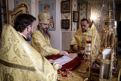Его Преосвященству сослужили: архимандрит Петр (Путиев), протоиерей Сергий Стаценко (Узбекистан), протодиакон Александр Несин (Узбекистан), диакон Виктор Штыркин.