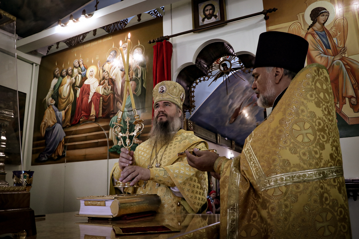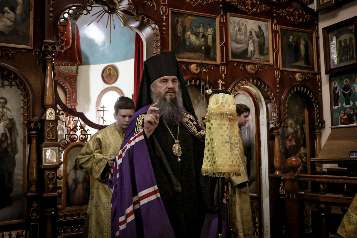 Владыке сослужили: архимандрит Петр (Путиев), протоиерей Алексий Зайцев.