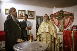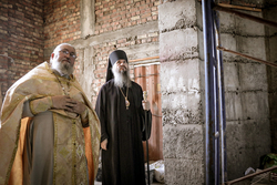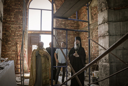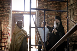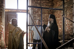 Затем владыка посетил храм блгвв. кнн. Бориса и Глеба в Военно-Антоновке. Встретившись с настоятелем иереем Вадимом Паскиным, Его Преосвященство ознакомился с ходом работ, которые идут на территории церкви; в частности строительство центрального входа в храм, внутренние отделочные работы и установка малого купола на колокольне.