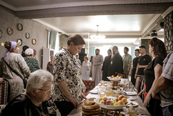 Затем родные усопшего пригласили владыку с сопровождающими разделить с ними поминальную трапезу. За обедом благочинный Южного округа протоиерей Виктор Реймген предложил уделить внимание восстановлению церкви на кладбище.