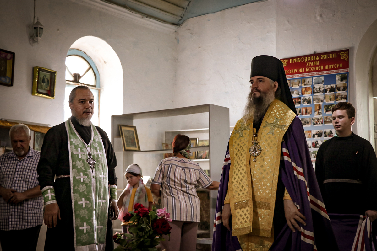 По прибытии, Его Преосвященство совершил славление Покрову Пресвятой Богородицы и обратился к прихожанам с архипастырским словом.