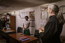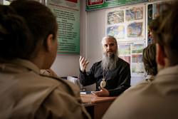 Затем владыка встретился с курсантами военно-патриотического клуба «Наследие» и его руководителем Говоритовым Александром Сергеевичем. Его Преосвященство прочитал лекцию на тему военно-патриотического воспитания и пообщался с представителями клуба, дал рекомендации по дальнейшему развитию этого молодежного движения.