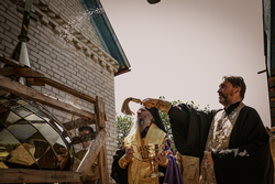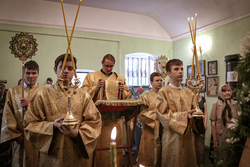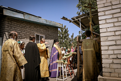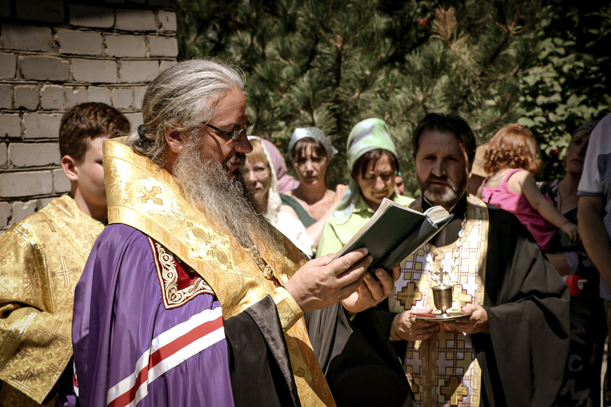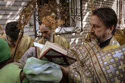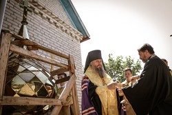 По завершении литургии был совершен крестный ход. Затем владыка освятил купола с крестом.
