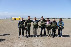 Ровно 10 лет назад в августе 2012 года, по благословению правящего архиерея Бишкекской епархии епископа Феодосия, на базе ДОСААФ в г. Кара-Балта были совершены прыжки с парашютом. Окормлял мероприятие иерей Николай Головченко, который и прыгнул первым.