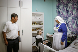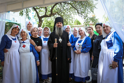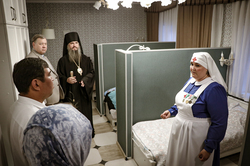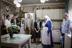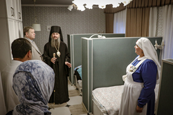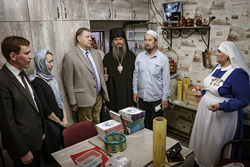После благодарственного молебна в Свято-Воскресенском кафедральном соборе для гостей мероприятия была проведена экскурсия по отделу, во время которой руководитель Елена Иванова ознакомила с основными направлениями работы, показала Благотворительную трапезную, приют «Надежда», Медицинский кабинет, мастерскую «Благо» и др.