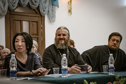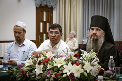 Заместитель директора Комиссии по делам религий КР Кажембердиев З.С., советник Посольства РФ в КР Харченко В.А., специалист учебного отдела Духовного управления мусульман Кыргызстана Адранов Оразали, руководитель представительства Россотрудничества в КР Зульхариев А.Ф., руководитель соцотдела Казахстанского митрополичьего округа, протоиерей Вячеслав Пугачев, руководитель соцотдела епархии Иванова Е.Ю.